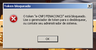 O Token “e-CNPJ NOME CERTIFICADO” está bloqueado.